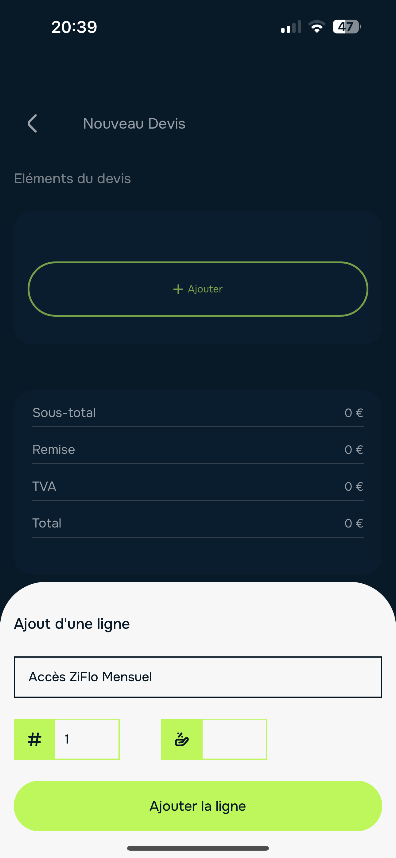 ZiFlo simplifie la gestion de vos devis, factures et transactions en centralisant toutes vos opérations financières sur une seule application mobile, avec des outils intelligents et sécurisés